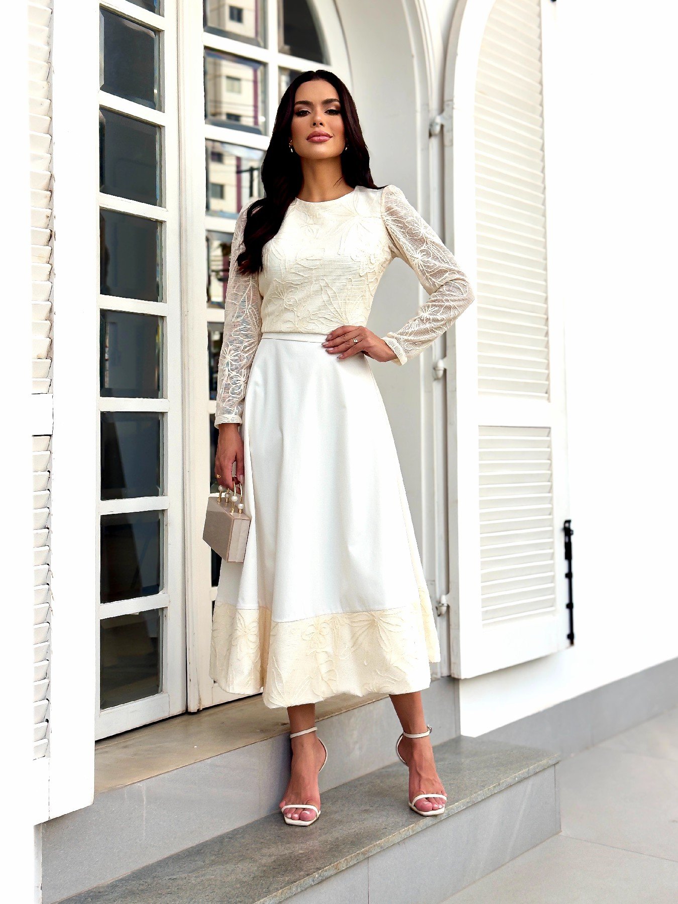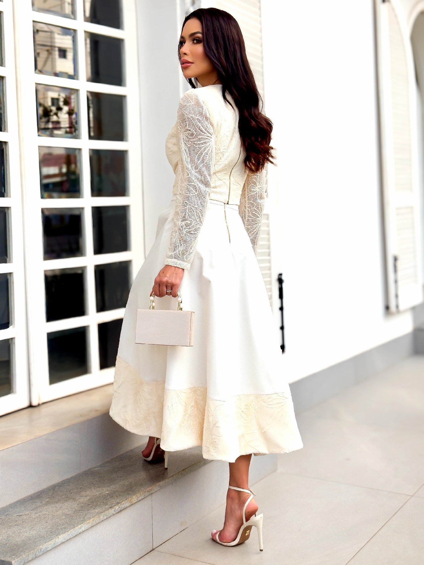 - O zíper invisível nas costas proporciona um fechamento discreto, garantindo um caimento perfeito e suave.