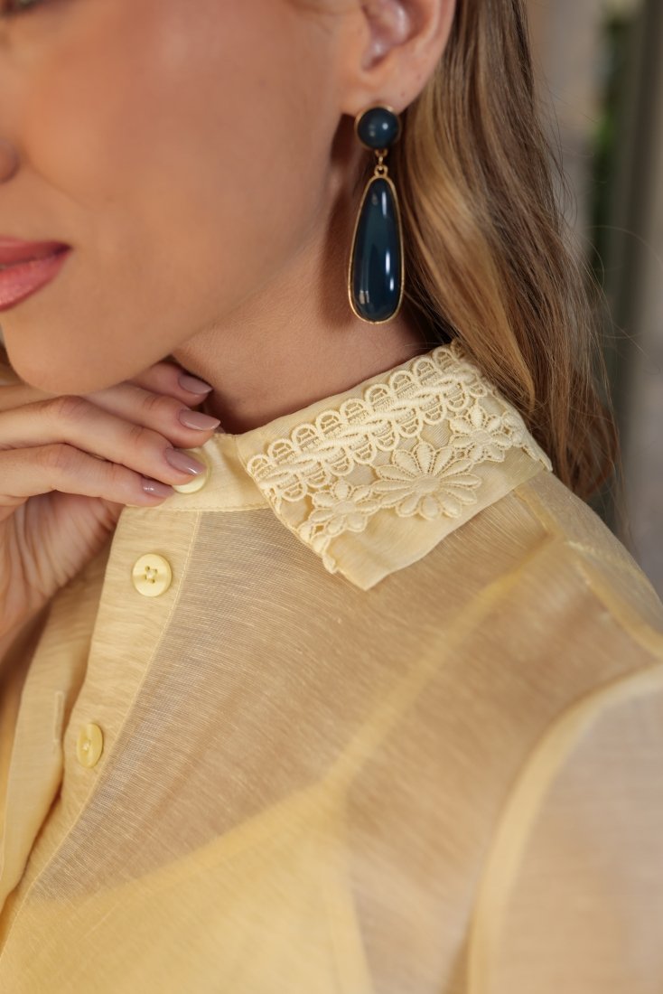 - O guippir aparece como ponto de destaque, enriquecendo a peça com textura e um acabamento refinado;