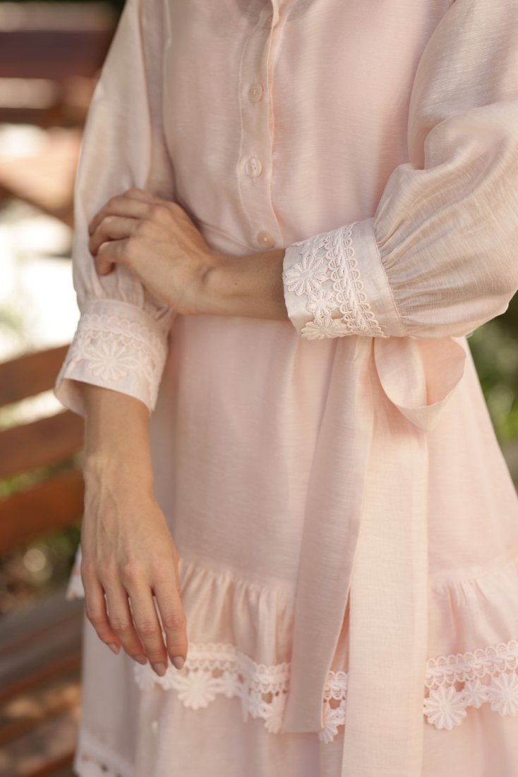 - O guippir aparece como ponto de destaque, enriquecendo a peça com textura e um acabamento refinado;