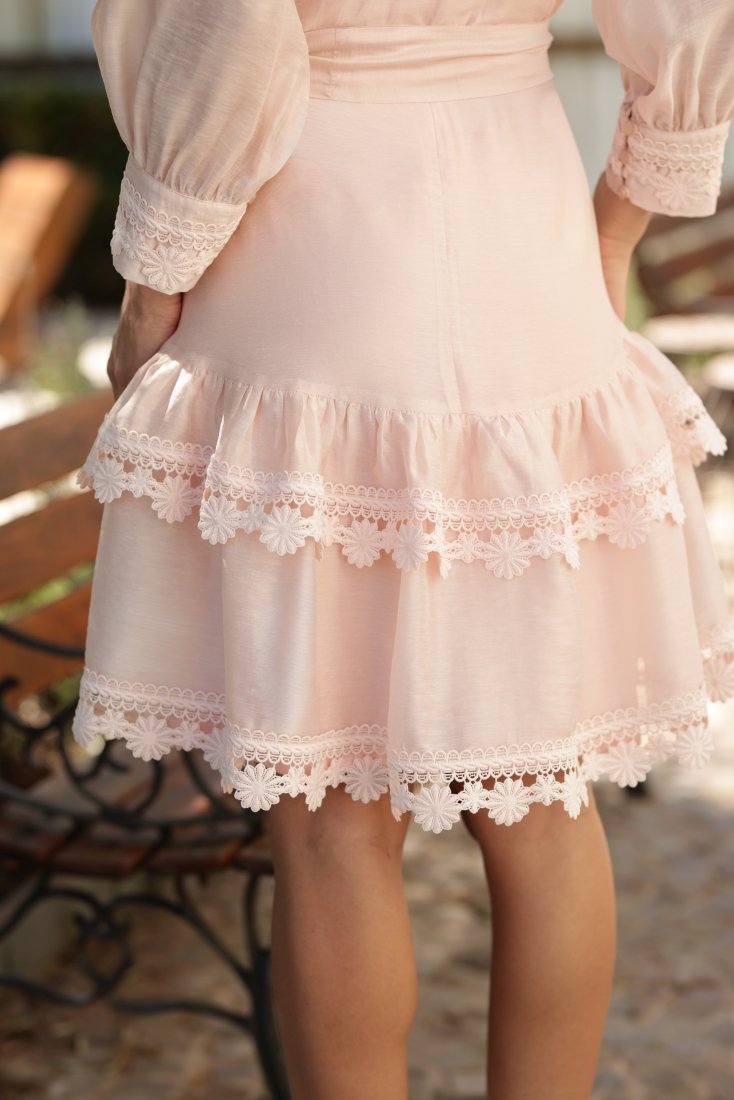 - A modelagem curta traz feminilidade e frescor, enquanto o caimento fluido garante movimento suave ao caminhar;