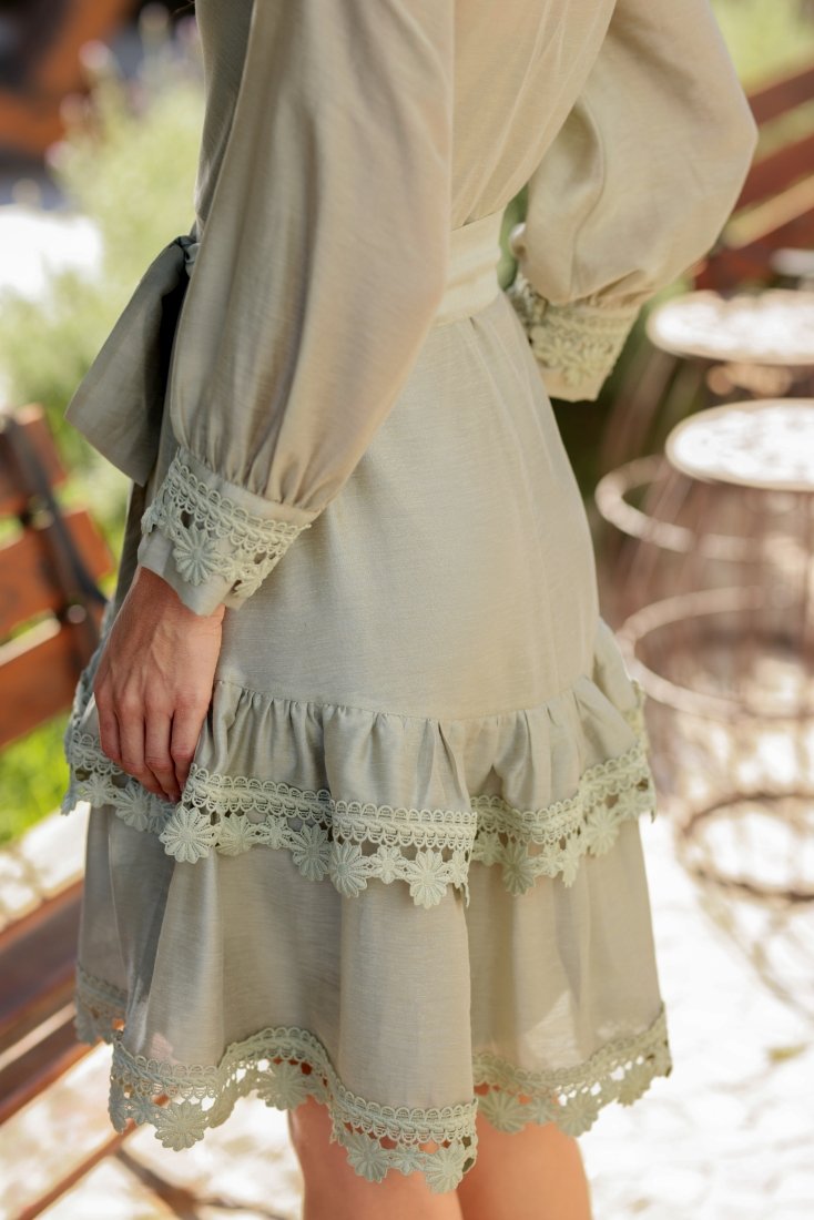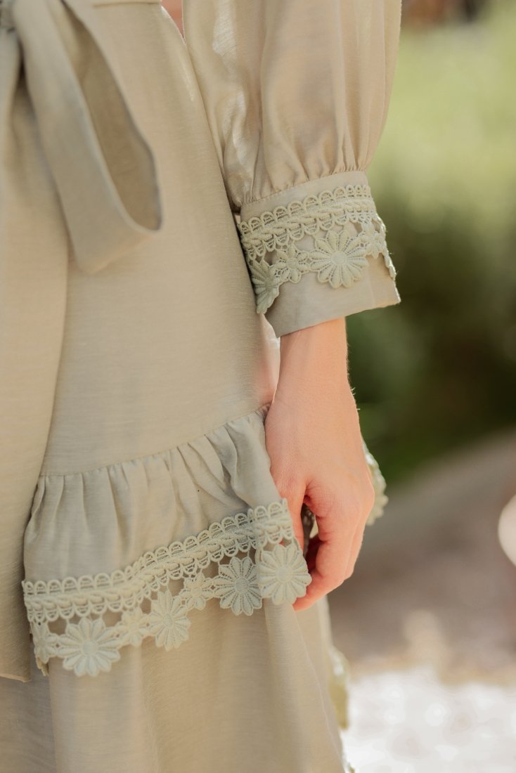 - O guippir aparece como ponto de destaque, enriquecendo a peça com textura e um acabamento refinado;