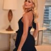 - O preto clássico ganha leveza e movimento com o design acinturado e o detalhe de amarração;