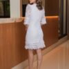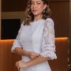 - Características: confeccionado em renda trabalhada com detalhes em guippir, o vestido Daisy combina feminilidade e sofisticação em uma modelagem ajustada que valoriza a silhueta. Possui mangas 3/4 e comprimento curto, equilibrando elegância e frescor;