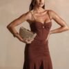 Conjunto Couro Sintético De Colete de Shorts Marrom