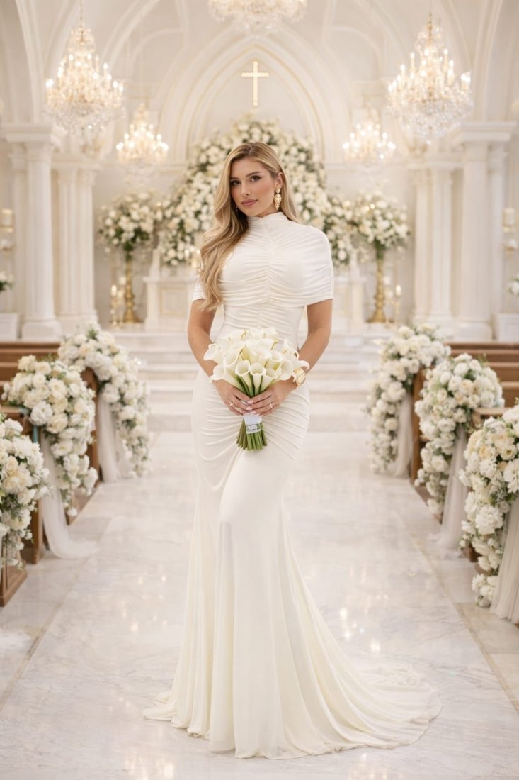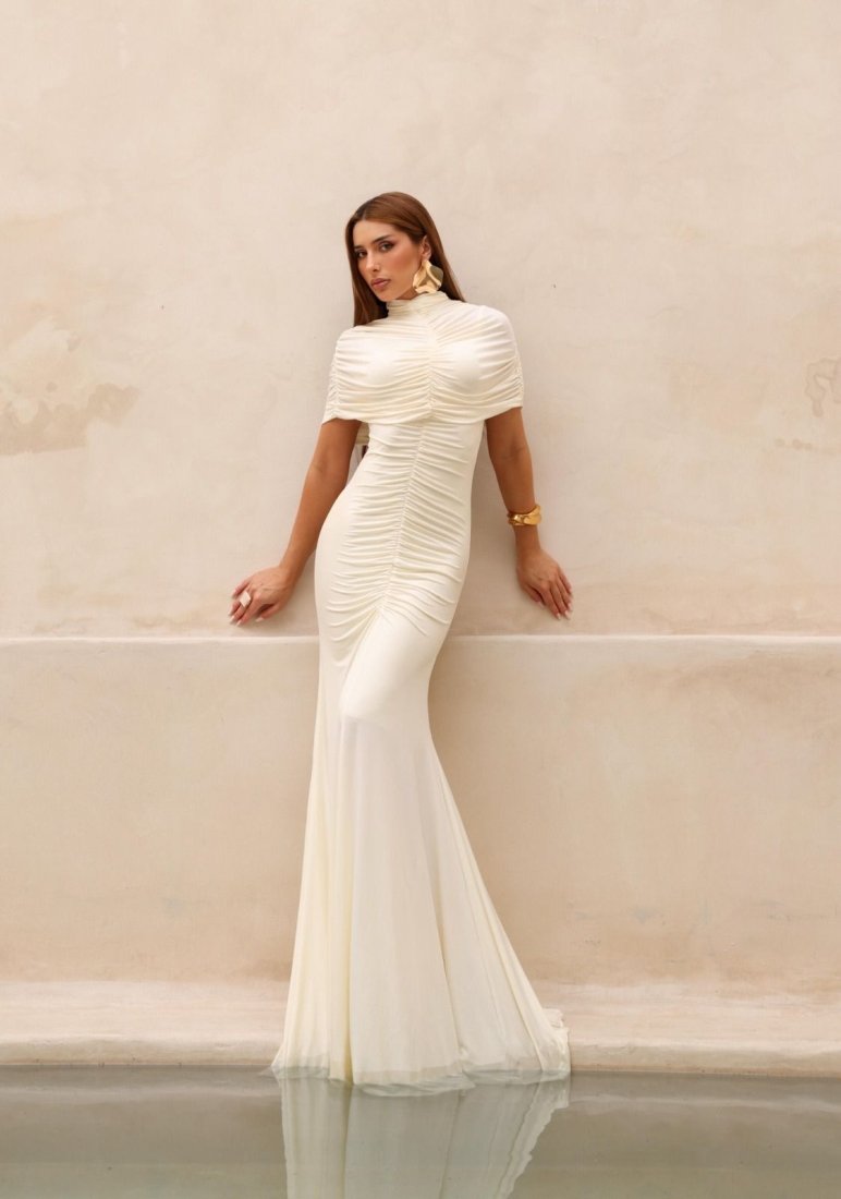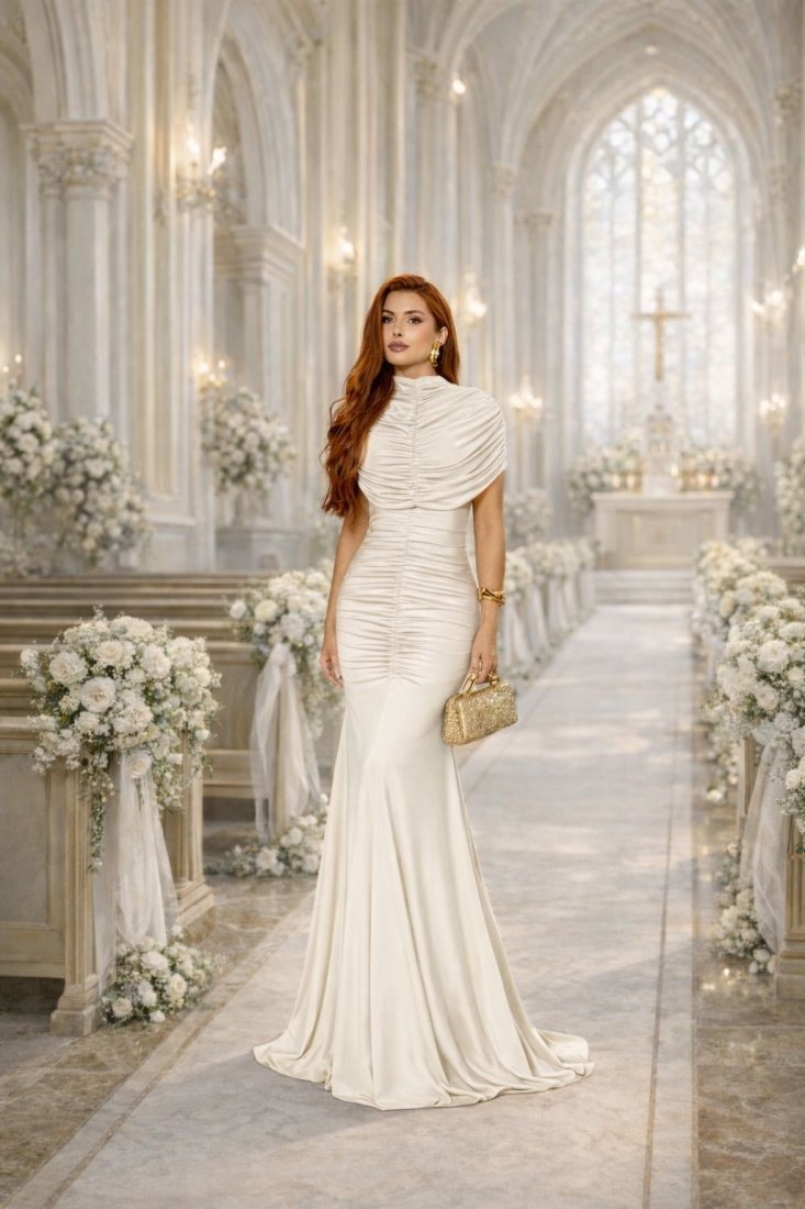 - Drapeado do busto ao quadril;