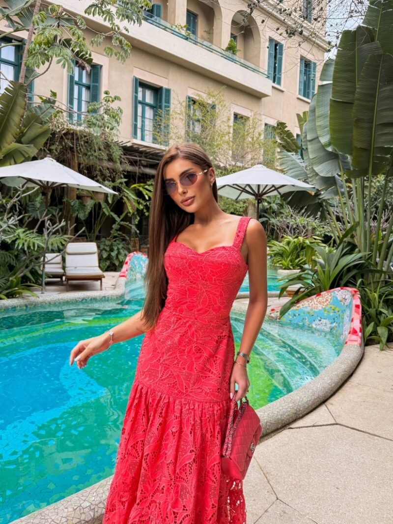 VESTIDO MIDI RENDA BRIDGET VERMELHO
