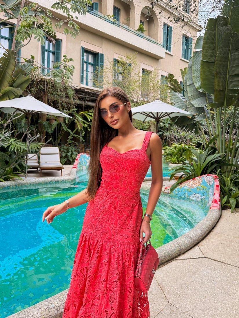 Uma peça romântica e versátil, perfeita para ocasiões especiais ao ar livre ou encontros que pedem elegância fresca e delicada.