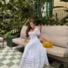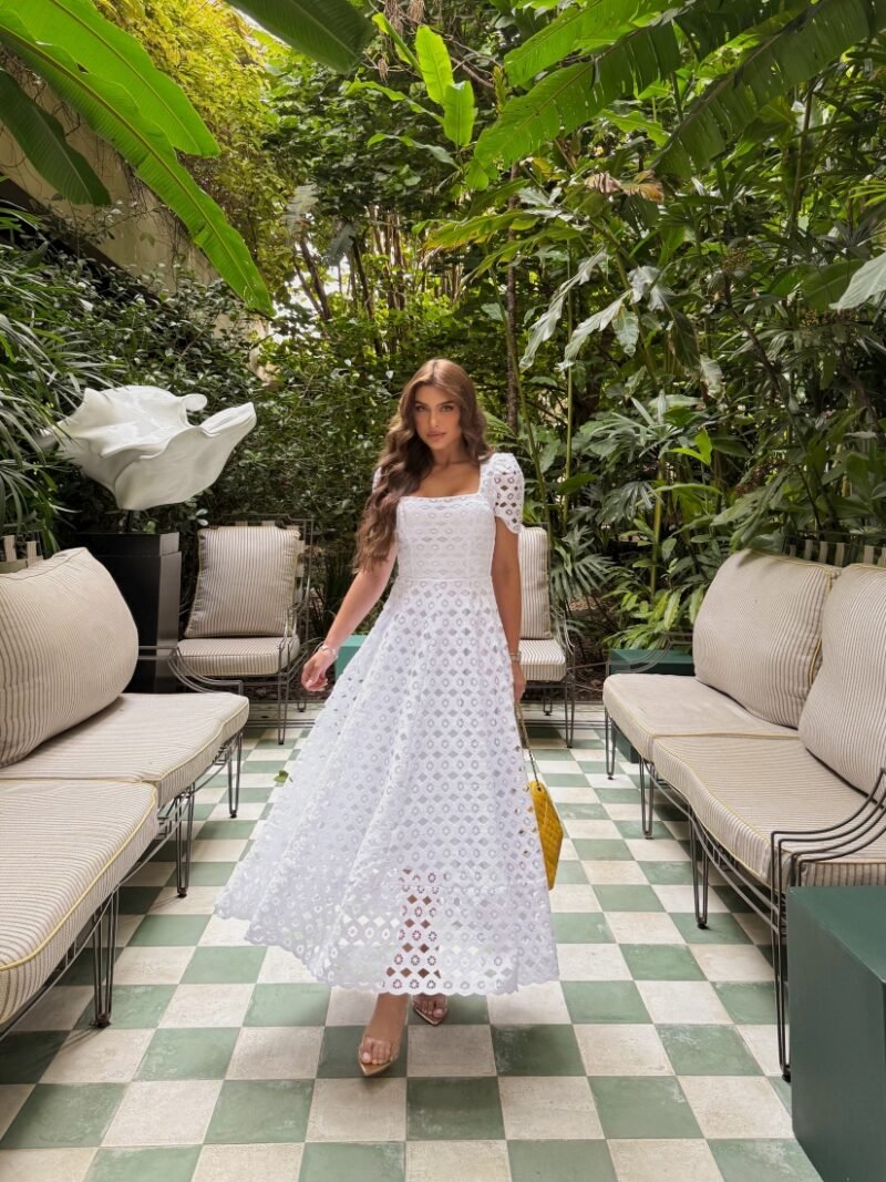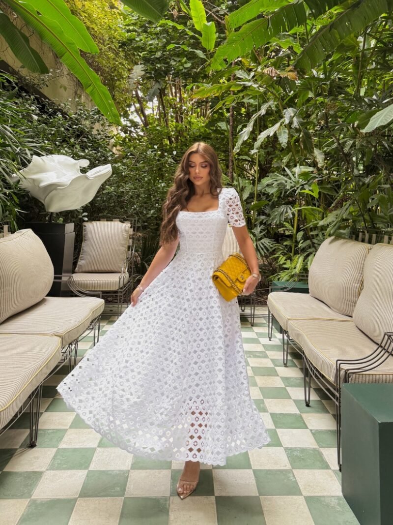 - A saia ampla garante fluidez e movimento, tornando-o ideal para celebrações diurnas, batizados, noivados ou eventos ao ar livre que pedem elegância fresh