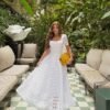 - O vestido Pure traz o charme atemporal da renda em uma modelagem midi impecável;