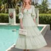 - Como usar: perfeito para momentos especiais, almoços e celebrações ao ar livre, o vestido Catarina combina com sandálias de salto delicadas ou rasteiras elegantes, criando um look leve e refinado;