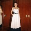 - Os recortes com vivos escuros e o cinto forrado com laço criam um efeito de cintura marcada que valoriza a silhueta;