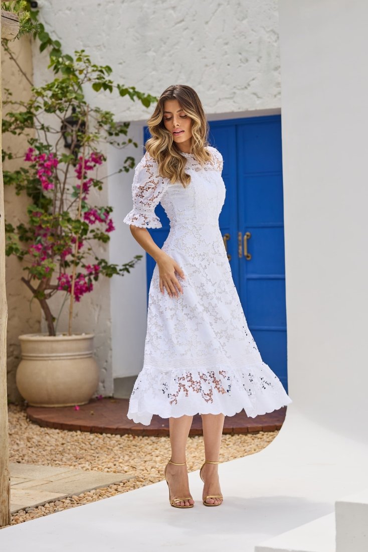 - A leveza e frescor do tecido Laise, combinados com o toque refinado do guippir;