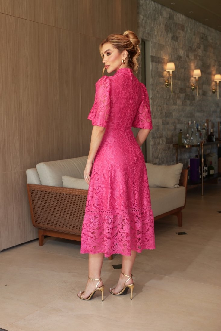 VESTIDO MIDI RENDA VALENTINI ROSÊ