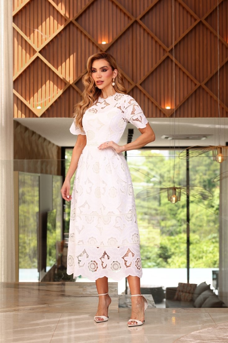Vestido Maxi Midi Victory Renda Off White