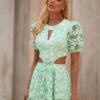 - Confeccionado em laise de algodão e linho na cor verde menta;