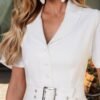 - Detalhes: o modelo conta com botões frontais encapados e bolsos funcionais, que conferem um toque contemporâneo. O tecido de Rayon garante conforto e movimento com aparência refinada. fivela frontal, que adiciona um toque moderno à peça;