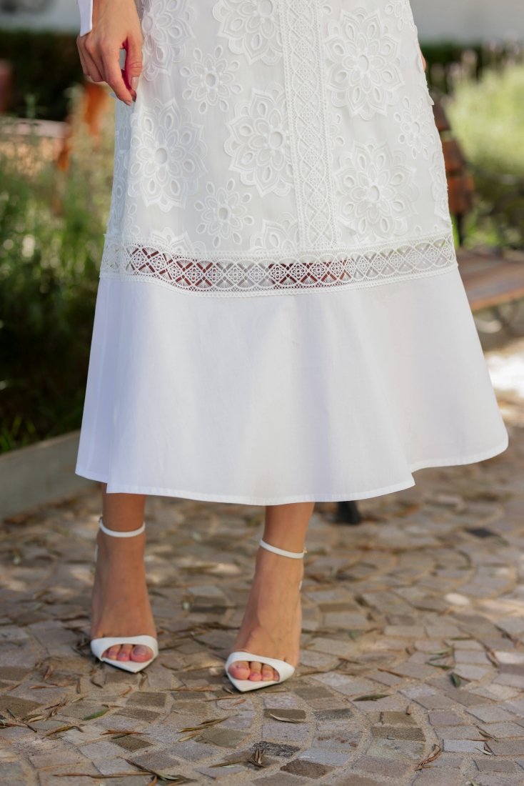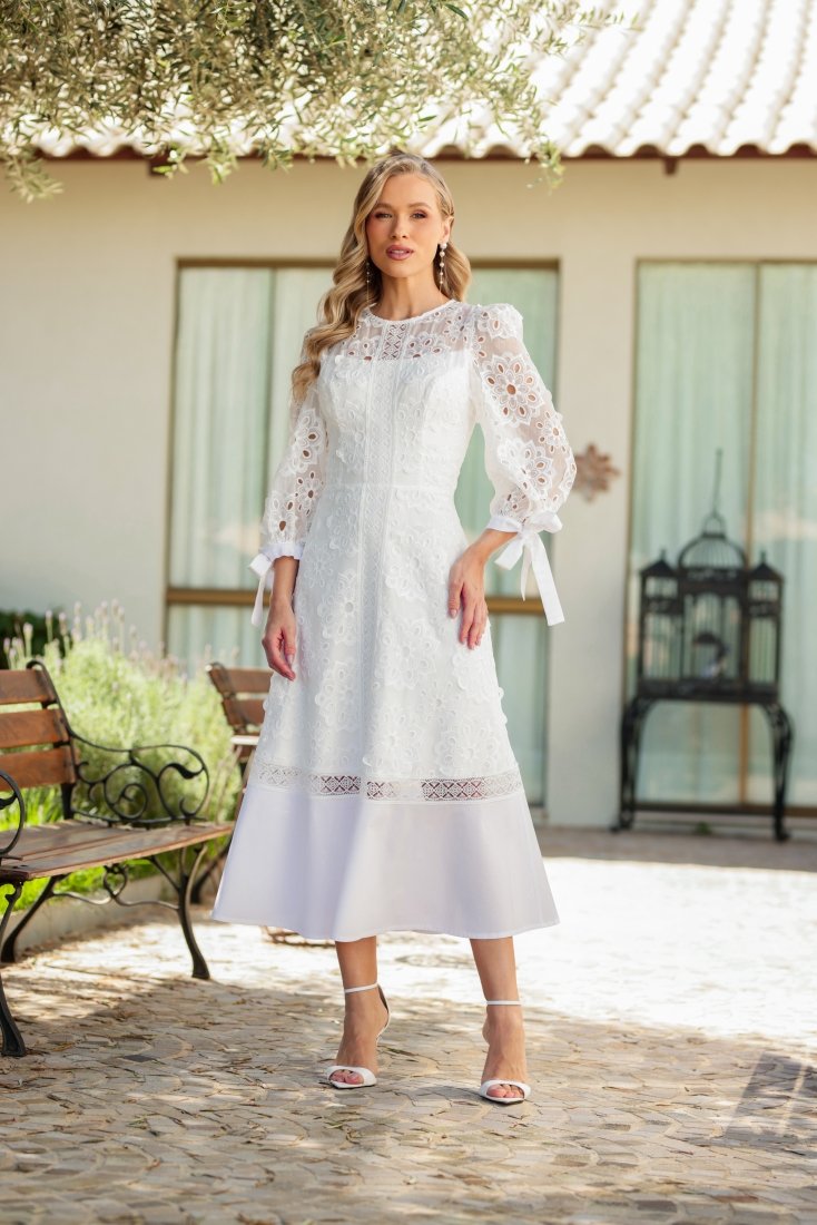 - Dicas Doce Maria: Use com sandálias de salto fino ou médio para eventos mais elegantes. Prefira acessórios discretos para valorizar os detalhes em 3D e guipir. Finalize com clutch estruturada para uma composição equilibrada e sofisticada.