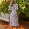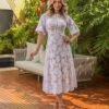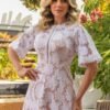 Vestido midi confeccionado em laise delicada, que une romantismo e frescor. Possui mangas amplas com leve transparência, gola arredondada e comprimento midi com caimento impecável.